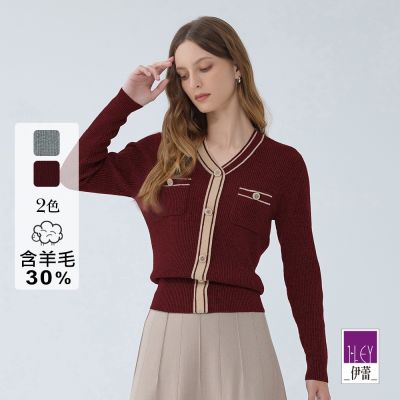 ILEY伊蕾 輕奢灰撞色V領混羊毛針織上衣(兩色;M-XL)1234455015$1,511
