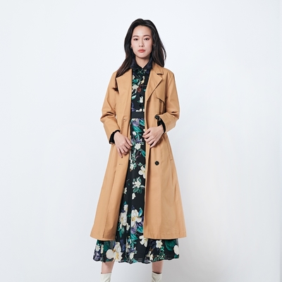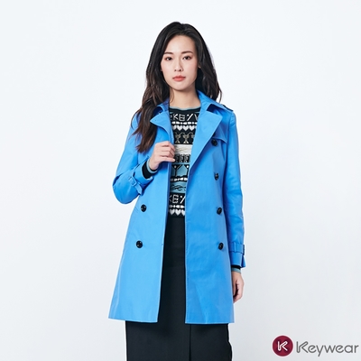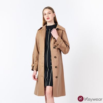 KeyWear奇威名品 經典款都會時尚長版風衣外套-咖啡色