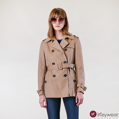 KeyWear奇威名品 時尚俐落設計短風衣-卡其色