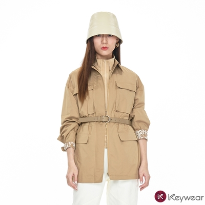 KeyWear奇威名品 蕾絲拼接風衣外套-卡其色
