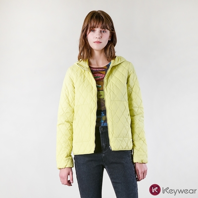 KeyWear奇威名品 玩色插袋連帽鋪棉外套-黃綠色