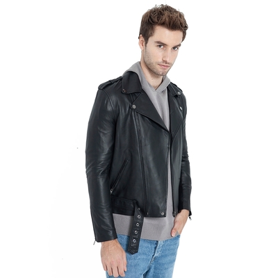 INTIMATUS 顯瘦高質感翻領軍扣真皮外套(經典黑) IW2109$8,980