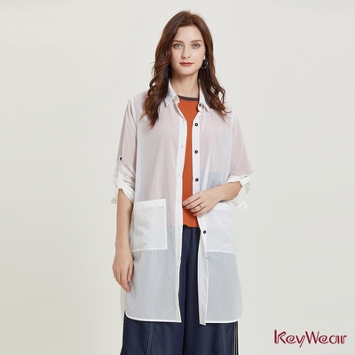 KeyWear奇威名品 簡約輕薄長版外套-白色