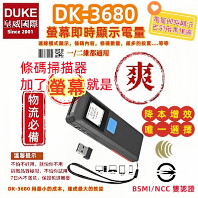 DUKEPOS 皇威國際 DK-3680螢幕型攜帶式二維無線條碼掃描器 有螢幕就是好用 物流新寵 開啟快遞高效新時代