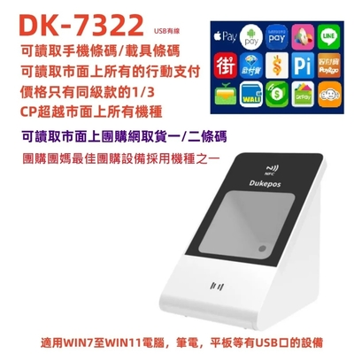 DUKEPOS 皇威國際 DK-7322 有線USB 行動支付掃描器 大躍進 手機條碼 商品條碼 QR CODE 門禁卡 手機感應 悠遊卡