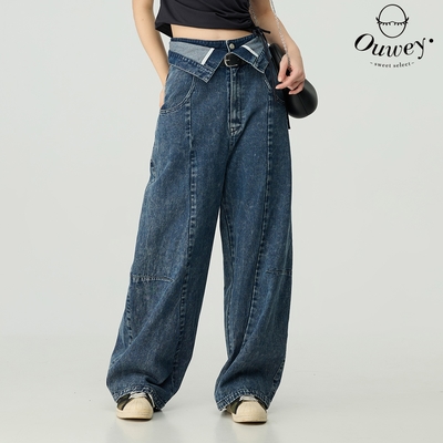 OUWEY歐薇 反摺腰頭小燈籠洗色牛仔褲(藍;S-L)$1,533
