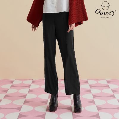 OUWEY歐薇 俐落都會全長微寬直筒褲(黑色;S-L)3233326546$644