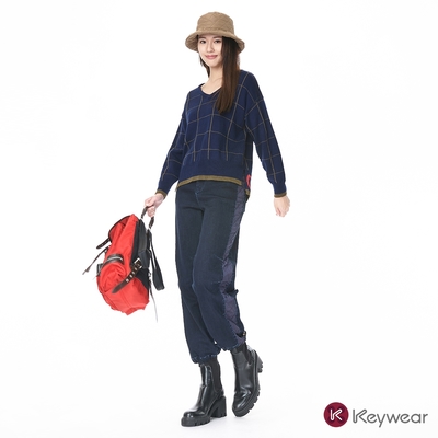 KeyWear奇威名品 雙色拼接縮口牛仔褲-深藍色$1,030