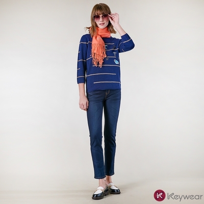 KeyWear奇威名品 經典百搭九分牛仔褲-深藍色