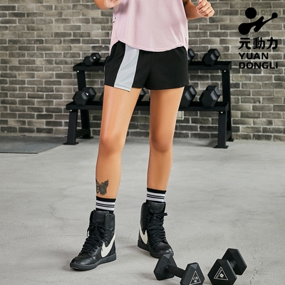 元動力-O 跳色拼接不規則雙層運動短褲(黑色;S-L)4222256006$447$496