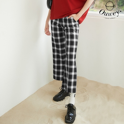 OUWEY歐薇 休閒時尚格紋九分寬褲(黑色;S-L)3232106504$540$599