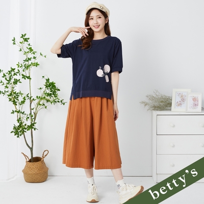 KeyWear奇威名品 古典碎花細褶中長裙-深藍色