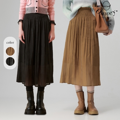 KeyWear奇威名品 A-Line鬆緊壓褶中長裙-深豆沙色