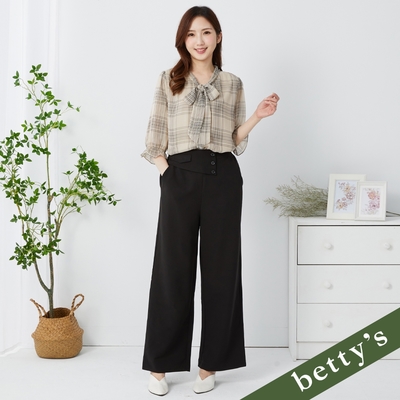 KeyWear奇威名品 裝飾釦盒摺格子中長裙-黑色