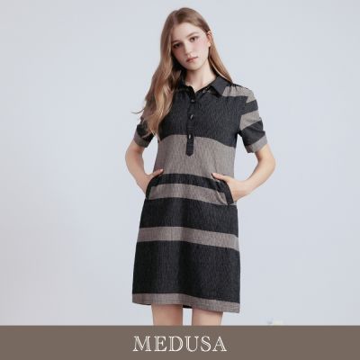 現貨【MEDUSA 曼度莎】亞麻橫紋短袖休閒襯衫洋裝(M-XL)|休閒洋裝 一件式洋裝 涼感透氣亞麻$2,280