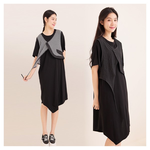 【Qiruo 奇若】秋冬專櫃黑色洋裝3209F 雙布料兩件式設計$1,168