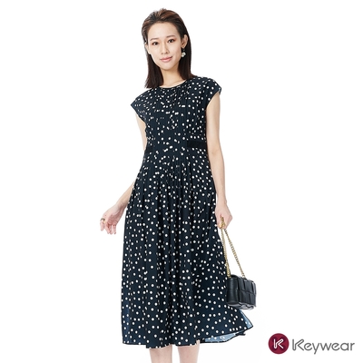 KeyWear奇威名品 波點收腰氣質洋裝-黑色