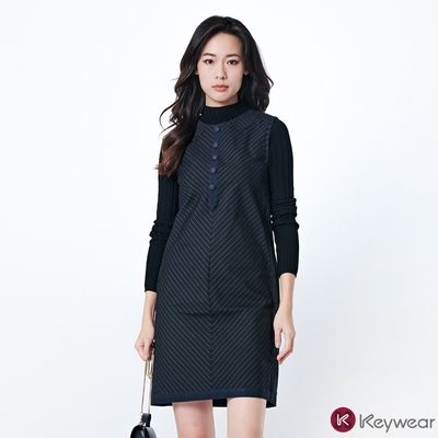 KeyWear奇威名品 撞色無袖針織洋裝-黑色