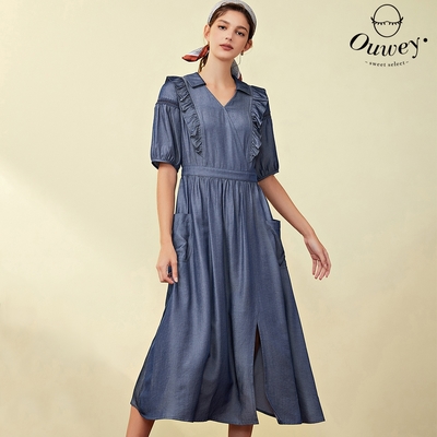 OUWEY歐薇 假兩件洗舊牛仔洋裝(藍;S-L)$2,280