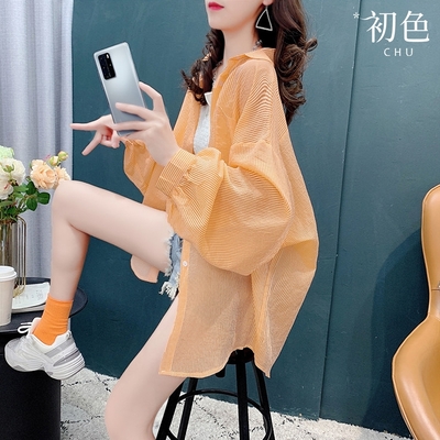 初色 休閒透氣輕薄中長款寬鬆空調衫防曬外套-共3色-69254(M-2XL可選)$269