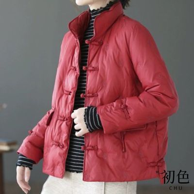 初色 新中式盤扣保暖科技羽絨棉鋪棉女外套-共3色-39059(M-2XL可選)