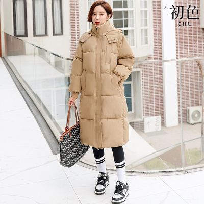 初色 純色長款加厚保暖立領長袖羽絨棉外套女外套-共2色-39174(M-2XL可選)