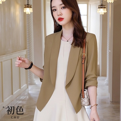 初色 夏季薄款氣質休閒修身七分袖西裝外套-共4色-68542(M-2XL可選)$349