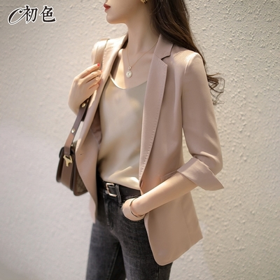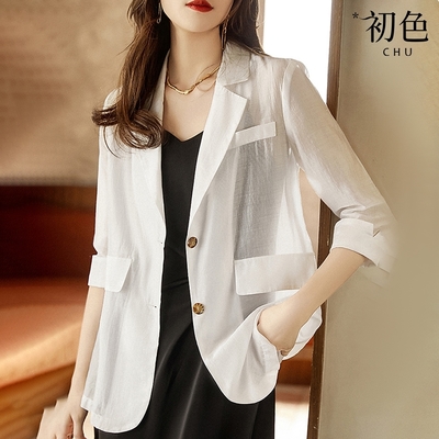 初色 夏季薄款氣質休閒修身七分袖西裝外套-共4色-68542(M-2XL可選)$369