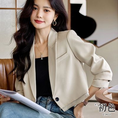 【初色】純色短袖西裝外套-共2色-61296(M-2XL可選)$269
