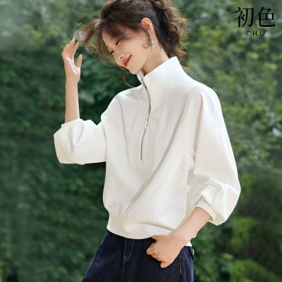 初色 日系純色圓領寬鬆大碼蝙蝠袖五分袖上衣女上衣-共5色-14531(F可選)$5508折