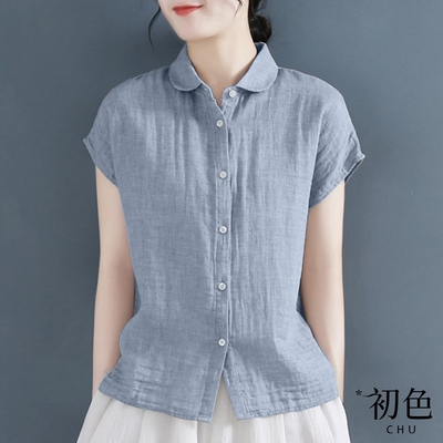 初色 棉麻風輕薄夏日翻領短袖純色襯衫上衣女上衣-共5色-35388(M-2XL可選)$3778折