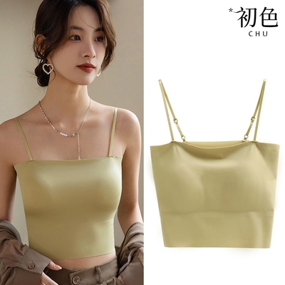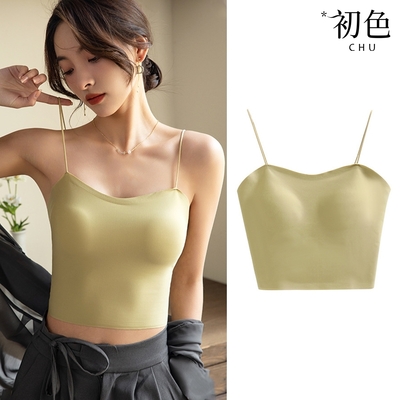 初色 休閒無痕帶胸墊一體式小可愛細肩帶短背心上衣-共5色-68650(M/L可選)$249