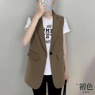 初色 素色西裝領馬甲背心式無袖外套-共3色-63996(M-2XL可選)$349