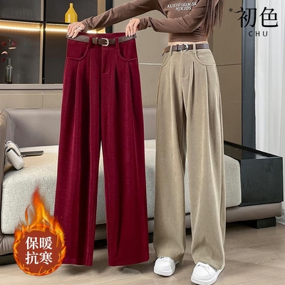 初色 素色百搭高腰顯瘦燈心絨垂感直筒闊腿寬褲長褲-共5色-31607(M-2XL可選)$269