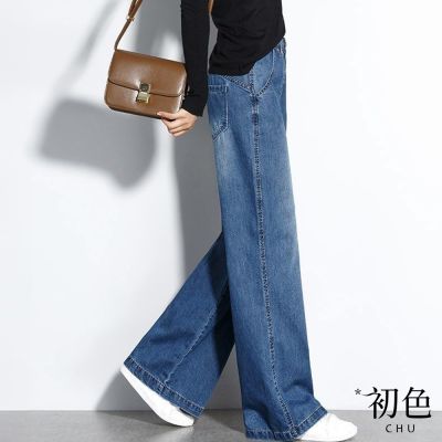 初色 垂感素色薄款闊腿牛仔褲長褲-共2色-69711(M-2XL可選)