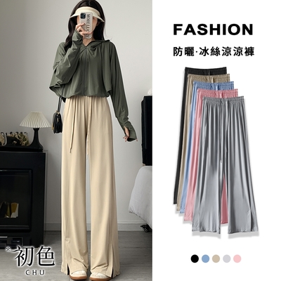 初色 涼爽寬鬆純色冰絲涼感防曬褲速乾褲直筒褲束腳褲-共2款10色款任選-13023(M-5XL可選/現貨+預購)