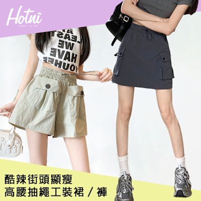 Hotni 酷辣街頭顯瘦 高腰抽繩工裝裙/褲-2款任選(KDSY-61H/KDPY-59H)$299