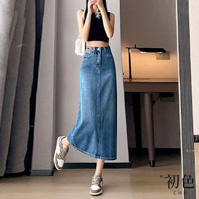 初色 休閒涼感簡約百搭薄款牛仔裙中長裙-5款任選-30060(M-2XL可選)$41376折