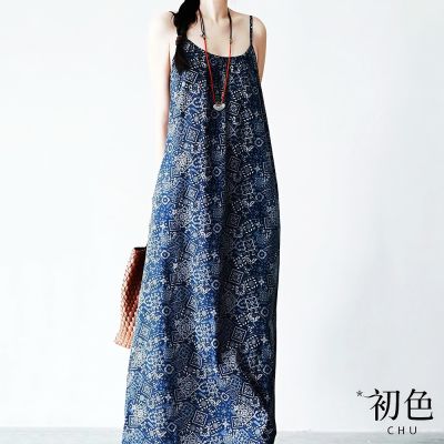 初色 民族度假風印花細肩吊帶背心裙連身裙長裙連衣洋裝-藍色-11759(M-2XL可選)$5728折