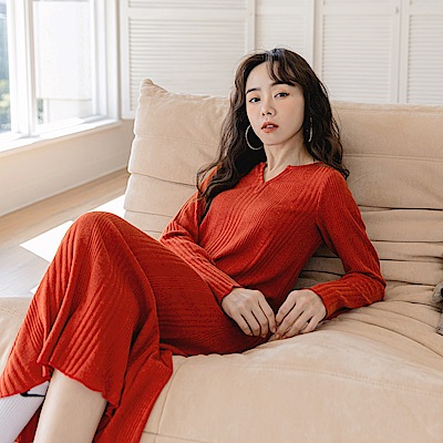 提花針織純色多色小V領合身洋裝-OB嚴選