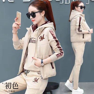 初色 連帽長袖運動服+無袖女背心+純色長褲套裝-共5色-39449(M-4XL可選)