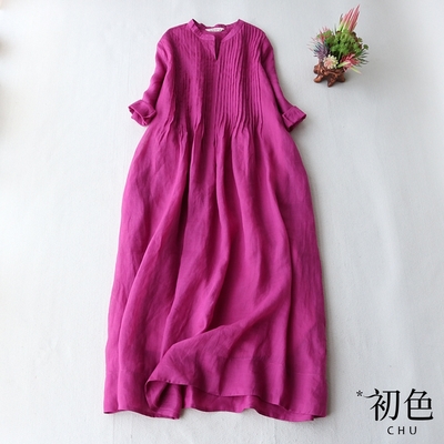 初色 壓褶飄逸純色棉麻風洋裝-共4色-61725(M-2XL可選)$349