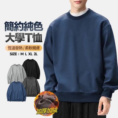 Dreamming 百搭素面親膚厚刷毛圓領棉長大學T-共六色$499
