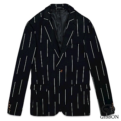 GIBBON 韓版型男修身西裝外套‧條紋黑46-50