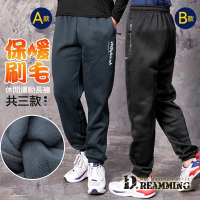 Dreamming 美式百搭保暖刷毛束口休閒長褲 運動褲 暖褲-共四款$299