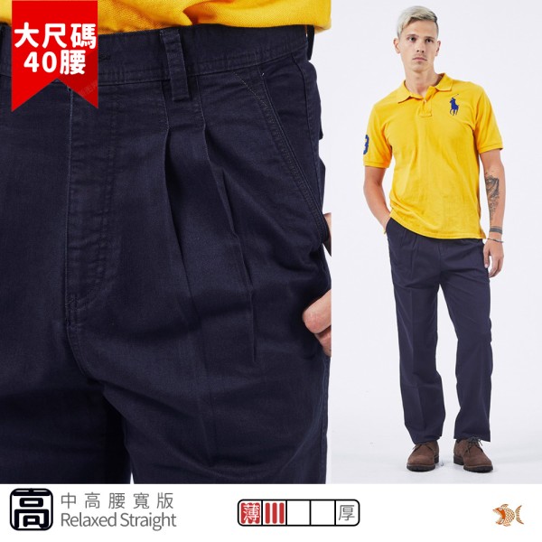 商店【NST Jeans】普魯士藍 彈性斜口袋男 中高腰寬版打摺褲 台製 大尺碼 008-67416