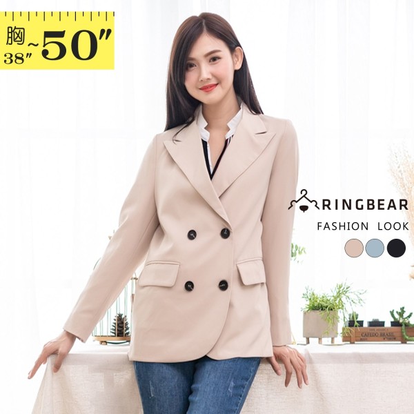 【V3818】shiny藍格子-夏風輕拂.翻領修身純色高級感雙釦西裝外套