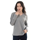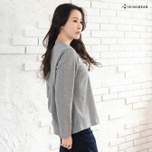 針織上衣--溫柔質感時尚簡約緹花針織V領寬鬆長袖上衣(灰.卡其L-3L)-X678眼圈熊中大尺碼