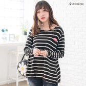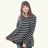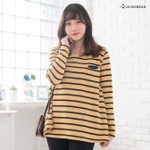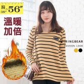 保暖--玩色親膚舒適大圓領撞色口袋傘擺橫條紋磨毛長袖上衣(黑.黃M-5L)-A240眼圈熊中大尺碼