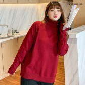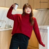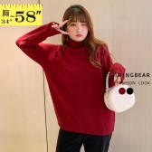高領毛衣--純色簡約柔軟舒適寬鬆羅紋高領長袖針織毛衣(黑.紅L-5L)-X575眼圈熊中大尺碼